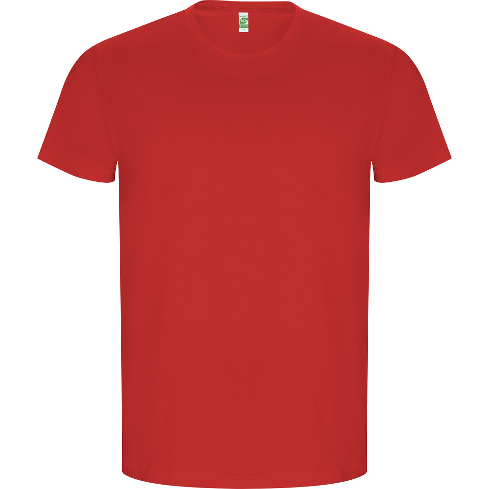 Pánské tričko s krátkým rukávem z organické bavlny, bez bočních švů. Kulatý průkrčník s žebrováním 1x1. Dekorativní prošití na spodním lemu a rukávech.