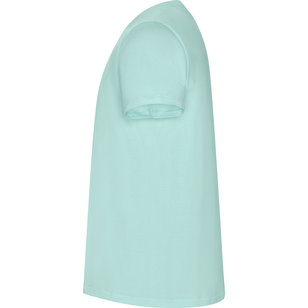 Pánské tričko s krátkým rukávem z organické bavlny, bez bočních švů. Kulatý průkrčník s žebrováním 1x1. Dekorativní prošití na spodním lemu a rukávech.