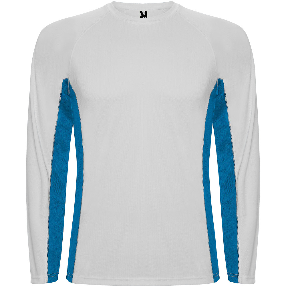Pánské funkční triko s dlouhým rukávem. Kombinace dvou polyesterových tkanin. Hlavní materiál: 100% polyester-honeycomb, boční panely: 100% mikroperforovaný polyester. Raglánové rukávy. Kulatý výstřih, zpevněné švy na průkrčníku. Pohodlné a snadno přizpůsobivé.