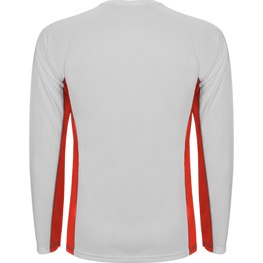 Pánské funkční triko s dlouhým rukávem. Kombinace dvou polyesterových tkanin. Hlavní materiál: 100% polyester-honeycomb, boční panely: 100% mikroperforovaný polyester. Raglánové rukávy. Kulatý výstřih, zpevněné švy na průkrčníku. Pohodlné a snadno přizpůsobivé.