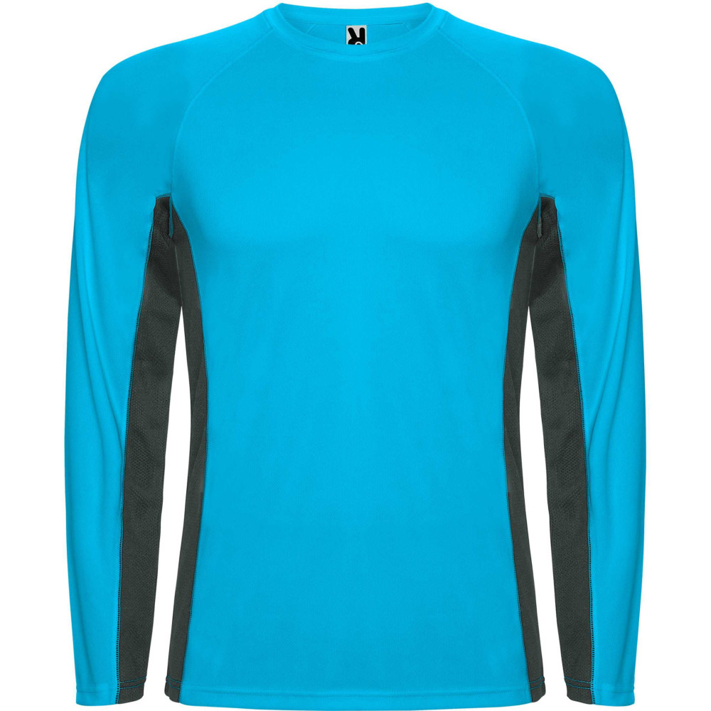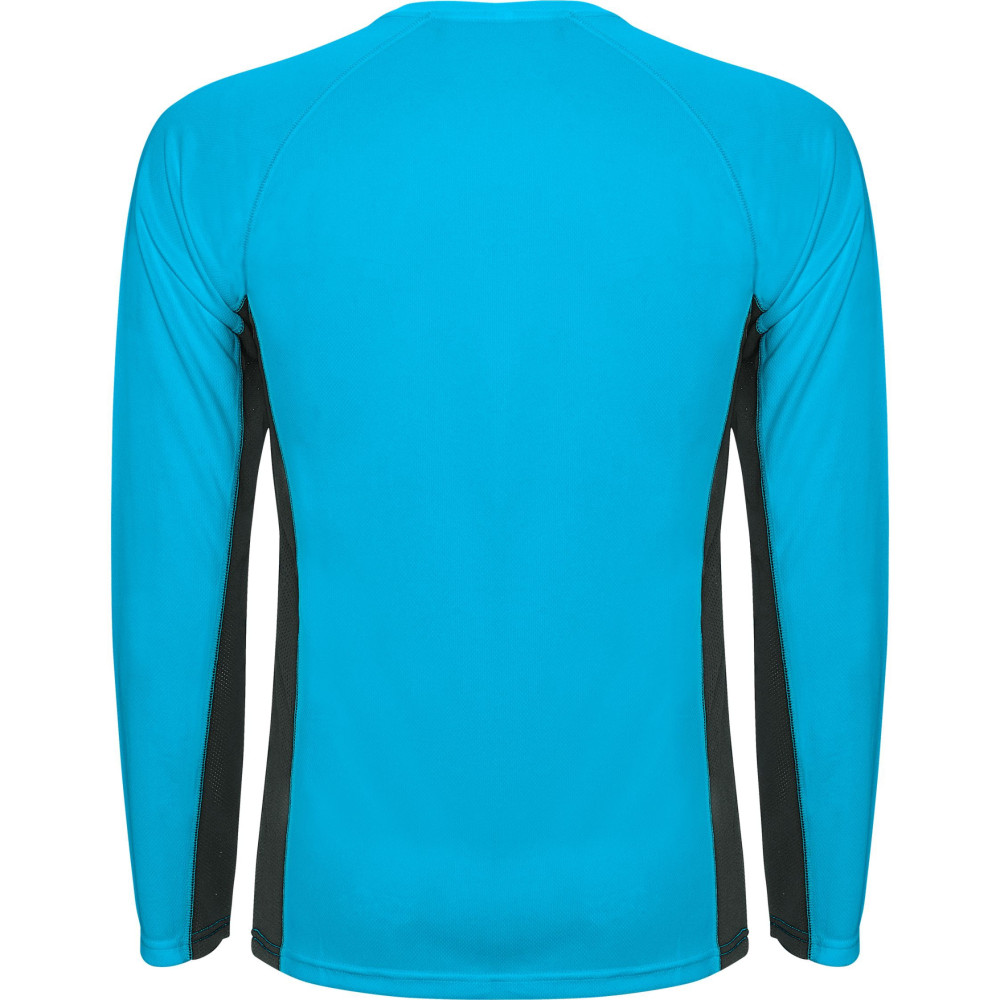 Pánské funkční triko s dlouhým rukávem. Kombinace dvou polyesterových tkanin. Hlavní materiál: 100% polyester-honeycomb, boční panely: 100% mikroperforovaný polyester. Raglánové rukávy. Kulatý výstřih, zpevněné švy na průkrčníku. Pohodlné a snadno přizpůsobivé.