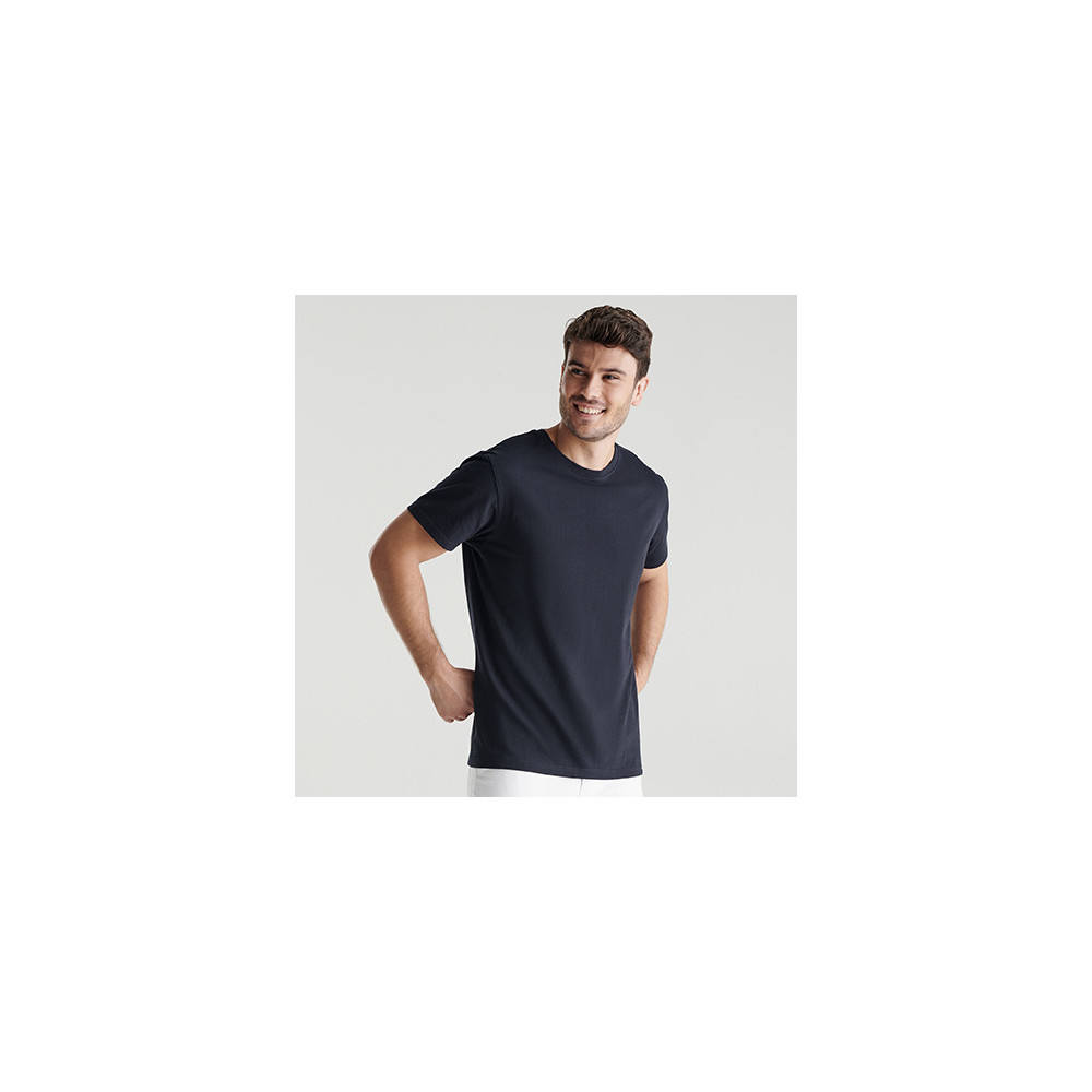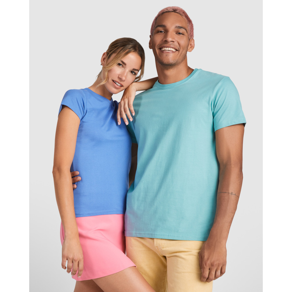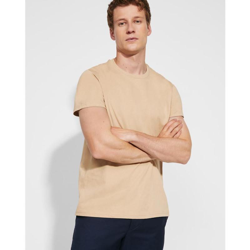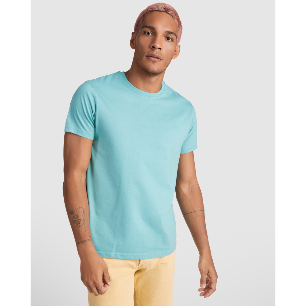 Tričko s krátkým rukávem bez bočních švů. Kulatý průkrčník s elastanem. Dětské velikosti mají boční švy.