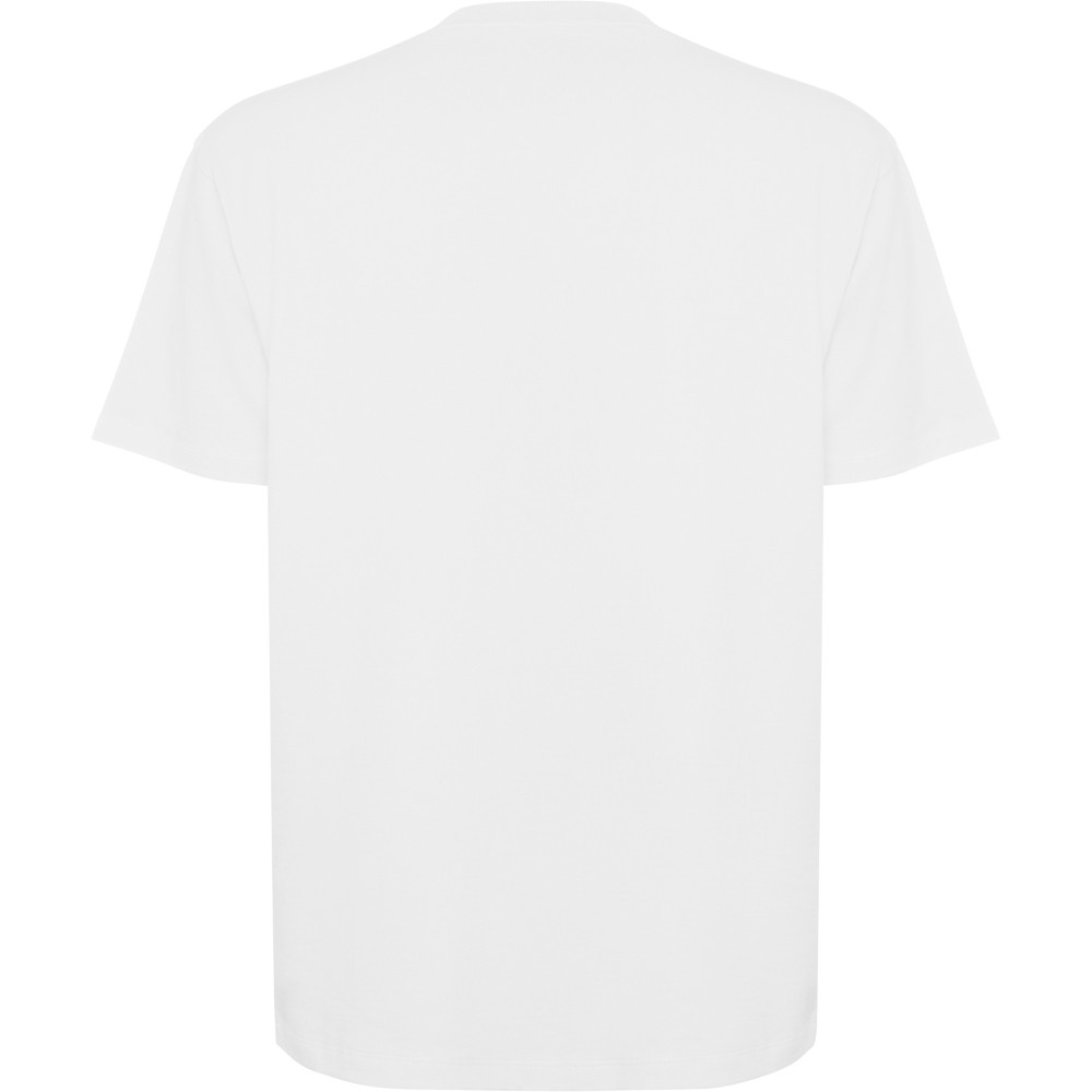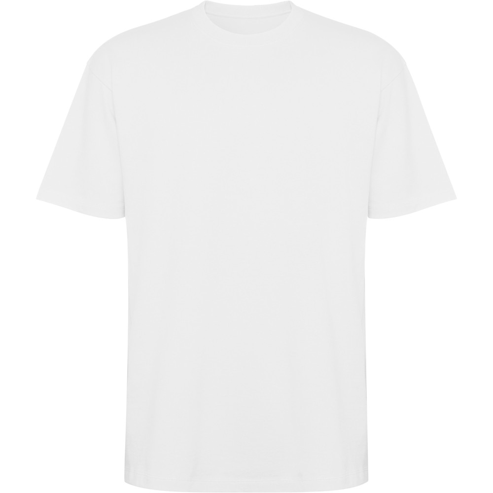 Tričko s krátkým rukávem v nadměrné velikosti. Okrouhlý límec lemovaný 2x1 žebrováním s odpovídajícími kryty švů. Boční švy. Široké dvojité prošití na rukávech a spodním lemu.