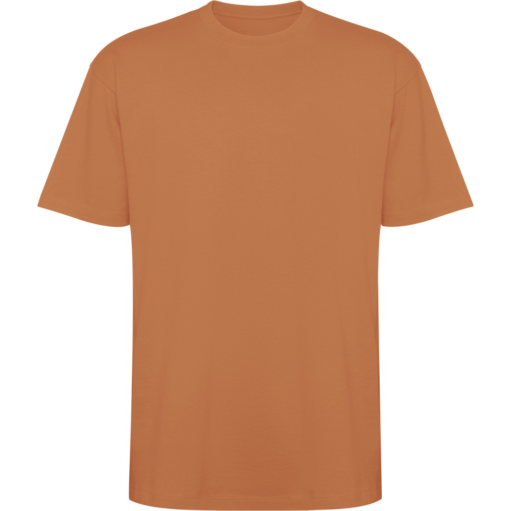 Tričko Oversize s krátkým rukávem v nadměrné velikosti. Okrouhlý límec lemovaný 2x1 žebrováním s odpovídajícími kryty švů. Boční švy. Široké dvojité prošití na rukávech a spodním lemu.