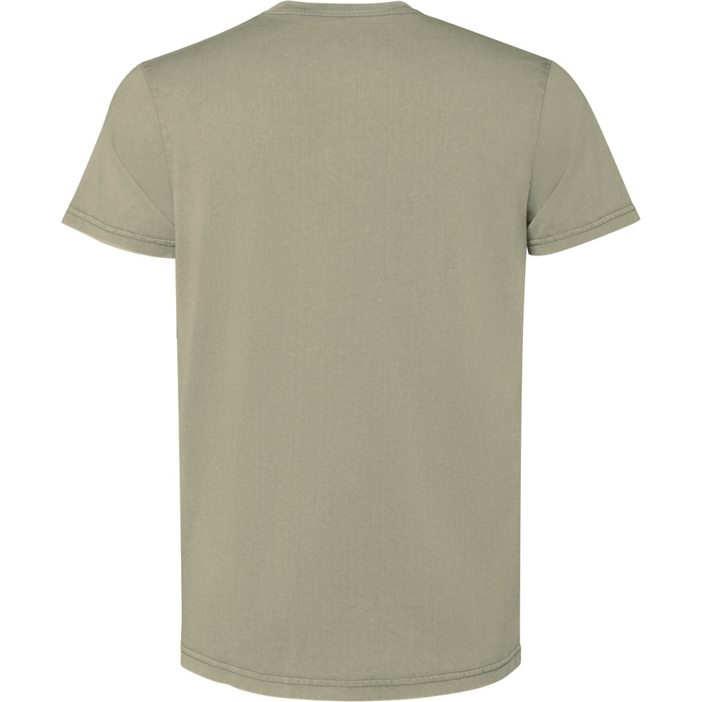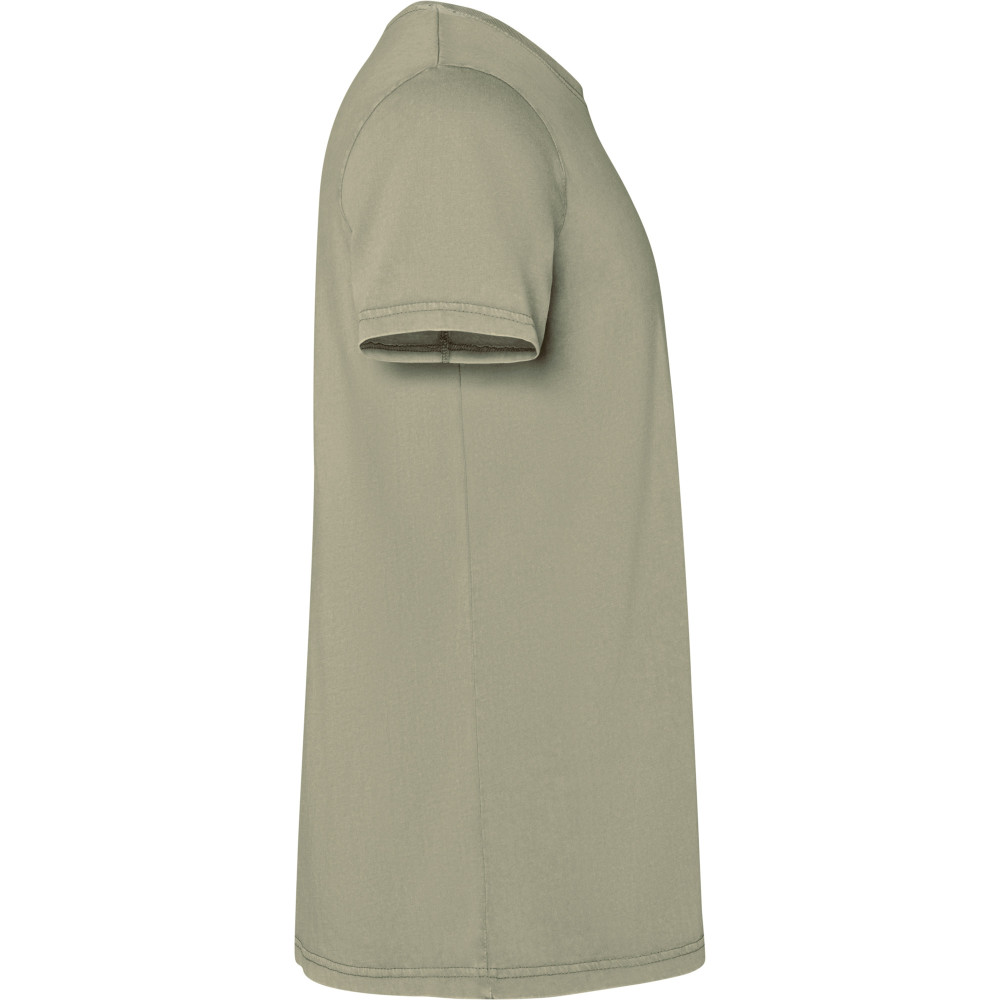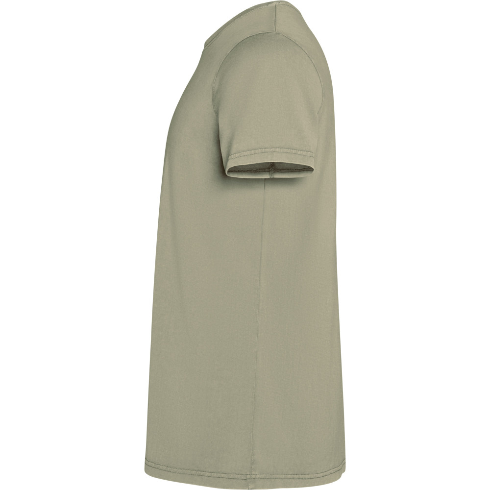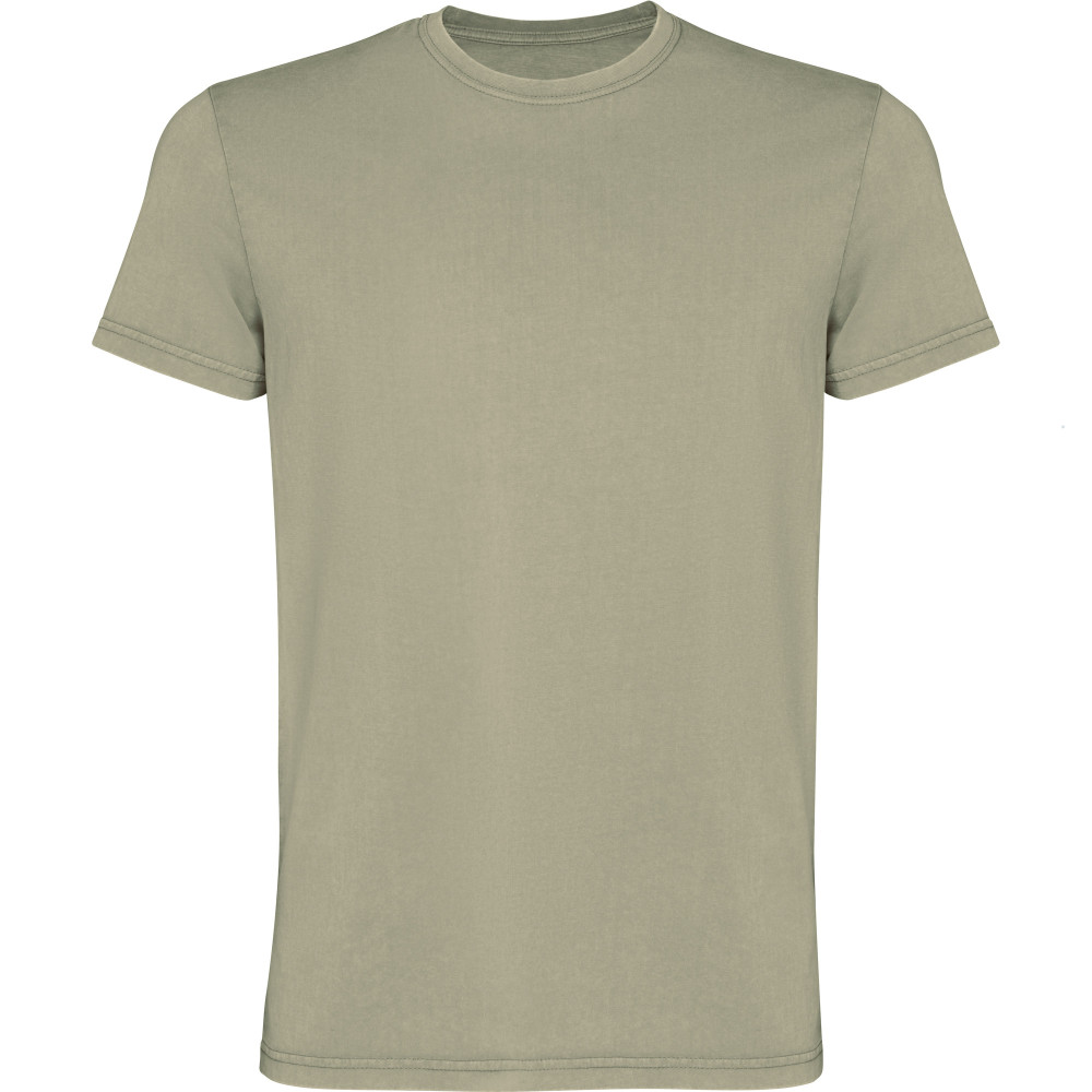 Pánské tričko s krátkým rukávem. Česaná bavlna s vypraným efektem. Kulatý výstřih s žebrováním 1x1. Podlepený výstřih ze stejného materiálu. Dvojité švy na bocích a v podpaží.