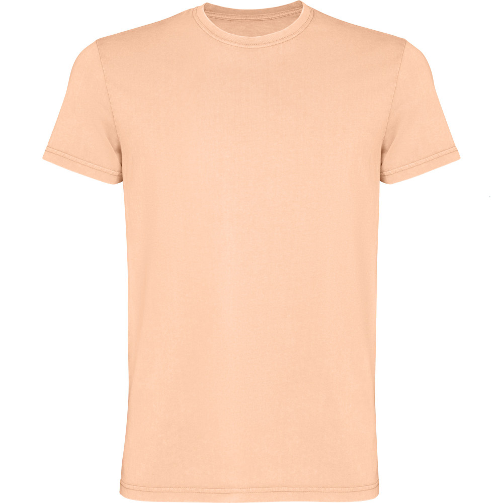 Pánské tričko s krátkým rukávem. Česaná bavlna s vypraným efektem. Kulatý výstřih s žebrováním 1x1. Podlepený výstřih ze stejného materiálu. Dvojité švy na bocích a v podpaží.