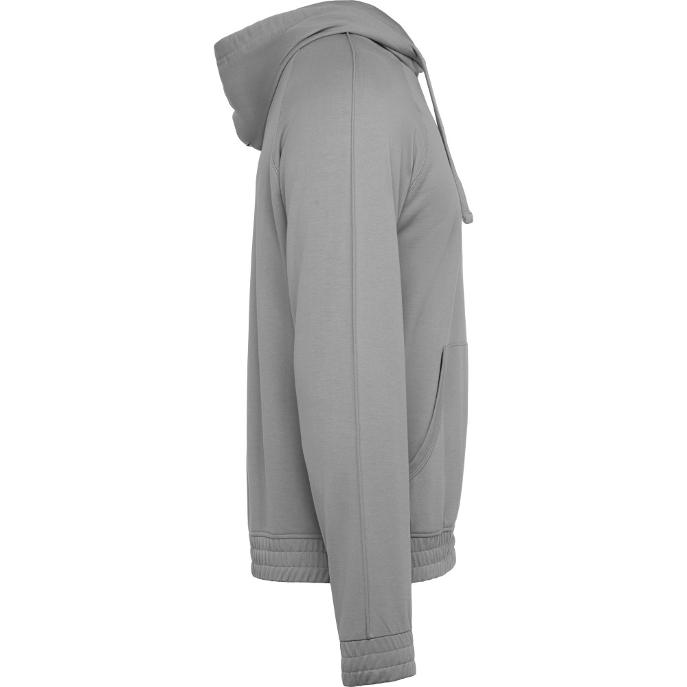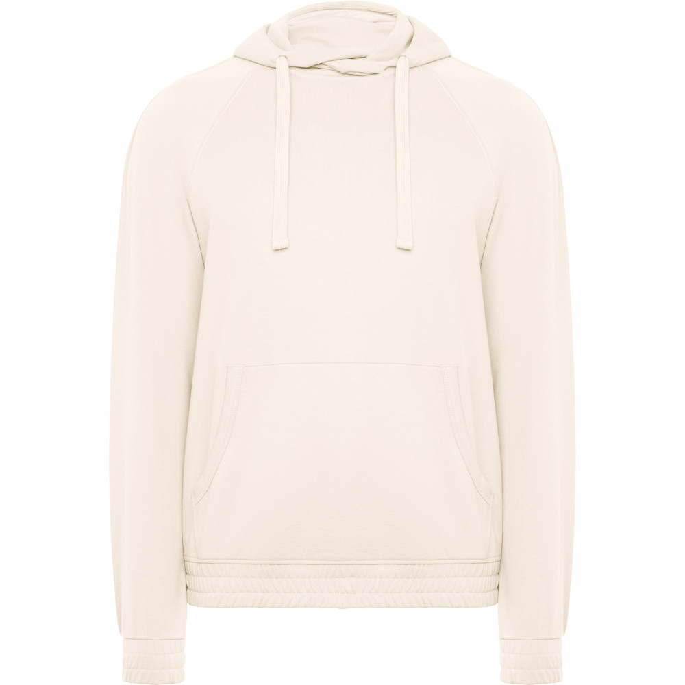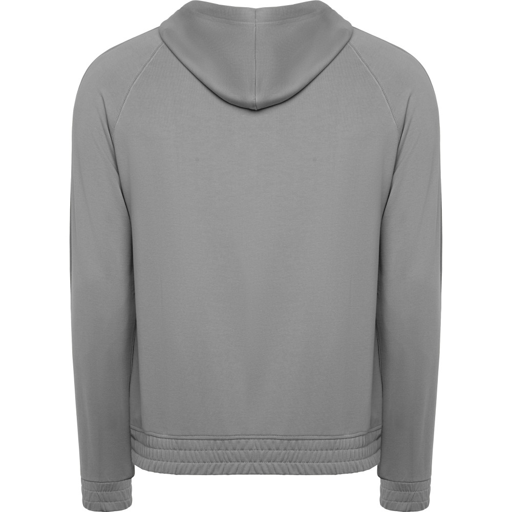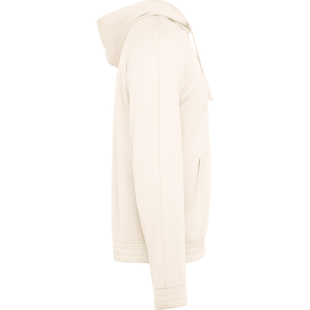 Pánská mikina s kapucí a klokaní kapsou. Plochá stahovací šňůrka s vyšívanými otvory. Manžety a spodní lem ze stejné látky mikiny. Prošívané detaily na rukávech.