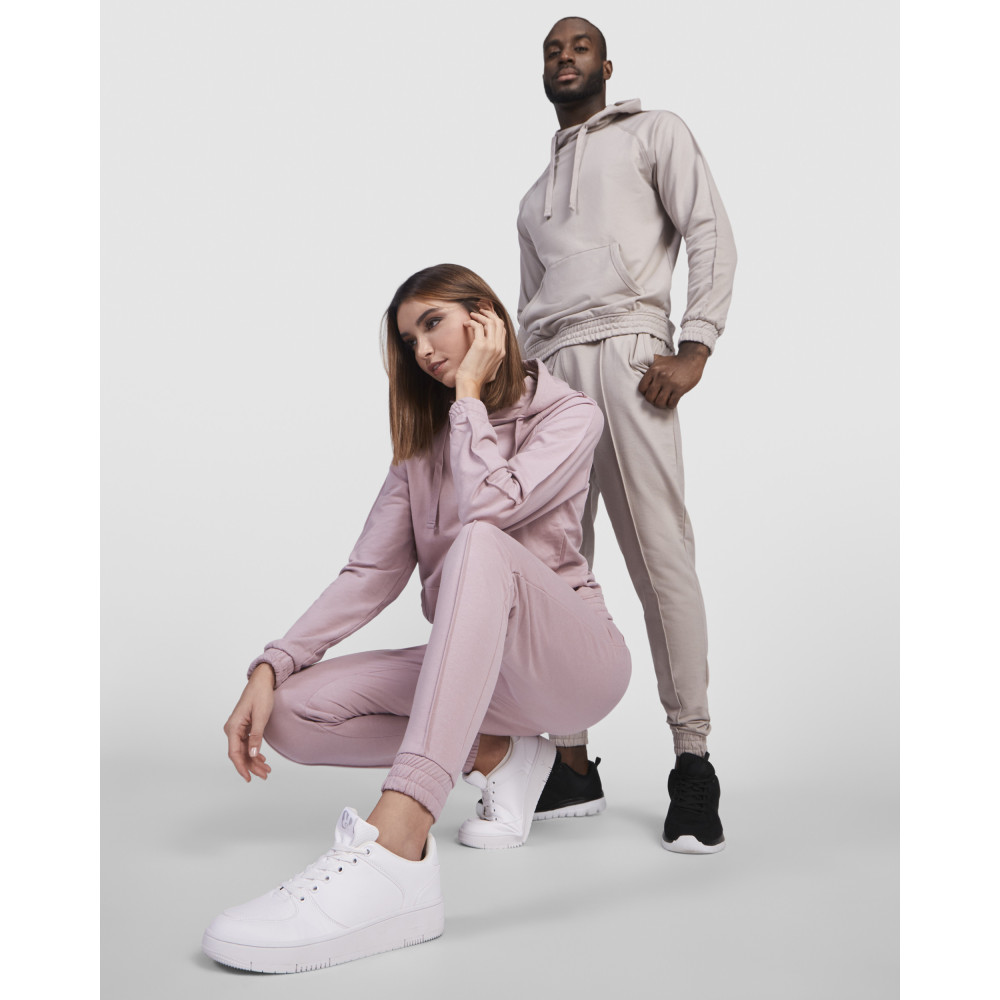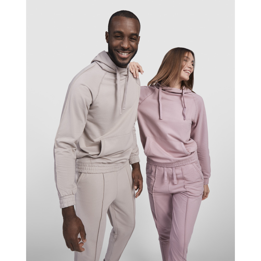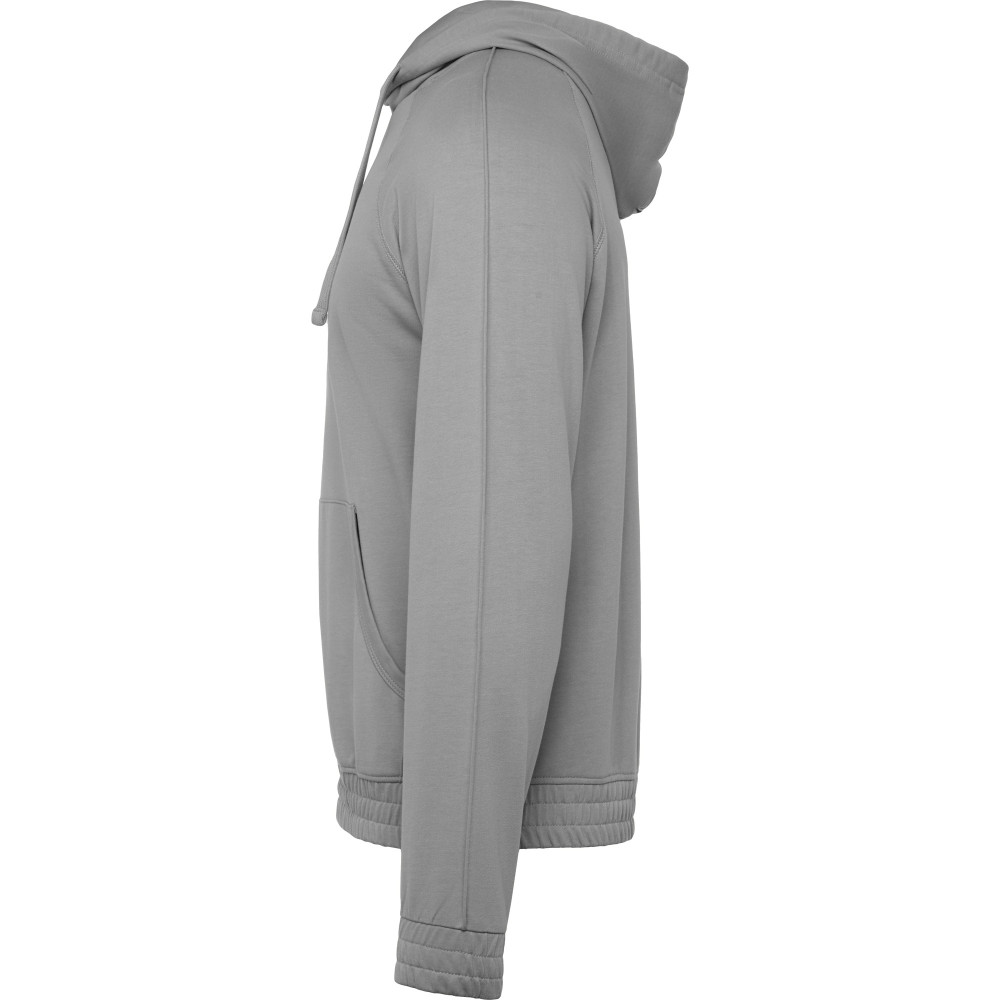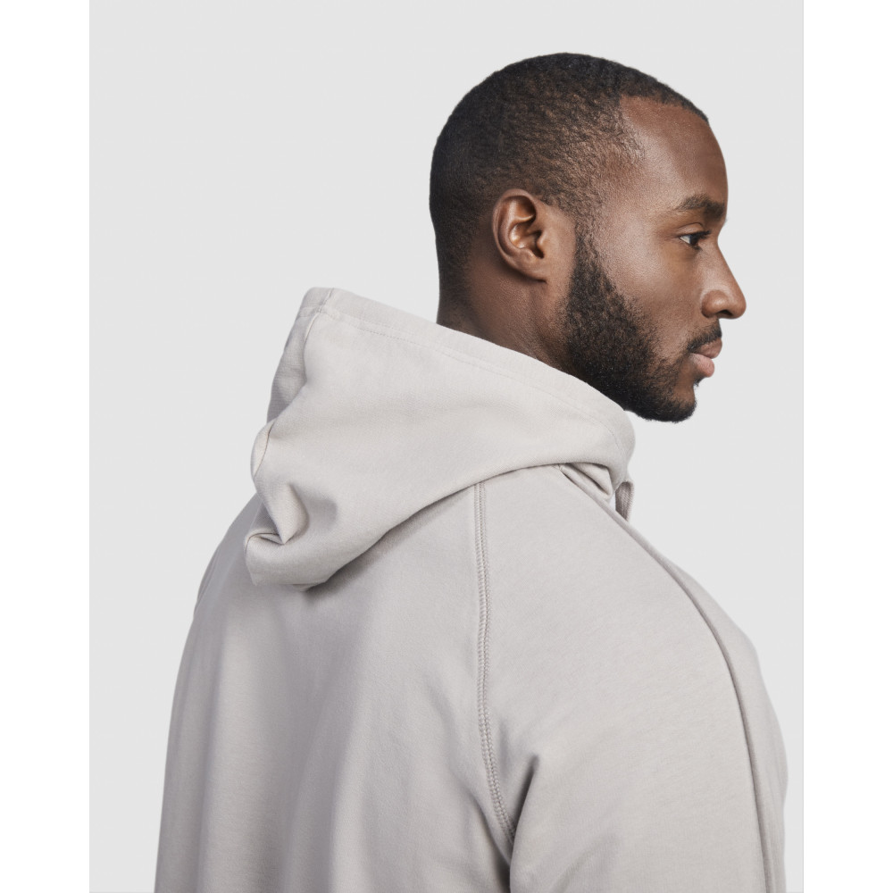 Pánská mikina s kapucí a klokaní kapsou. Plochá stahovací šňůrka s vyšívanými otvory. Manžety a spodní lem ze stejné látky mikiny. Prošívané detaily na rukávech.