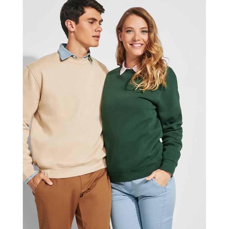 Mikina s klasickým, elastickým kulatým průkrčníkem. Průkrčník, lemování rukávu a dolní patent v žebrovaném úpletu 1x1. Zesílené švy průkrčníku. Počesaná vnitřní strana. MATERIÁLOVÉ SLOŽENÍ MIKIN JE BUĎ 65% POLYESTER+35% BAVLNA NEBO 50% POLYESTER+50%BAVLNA.