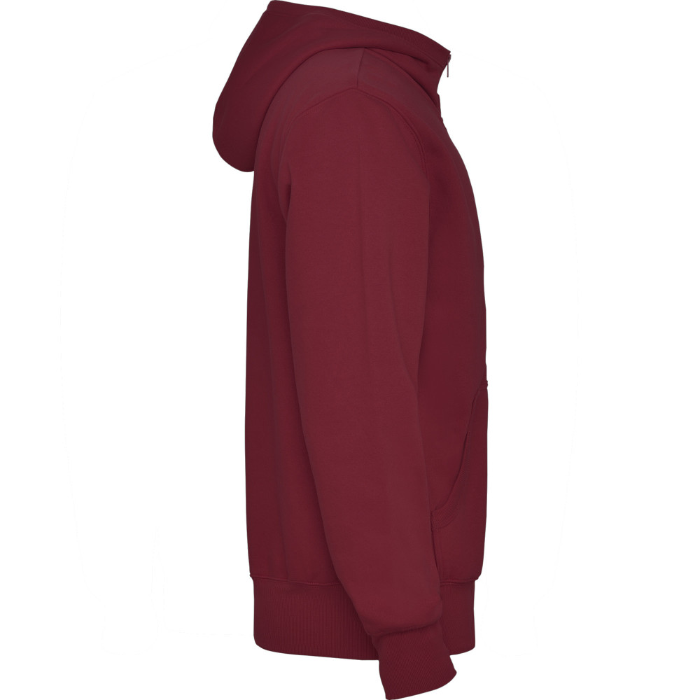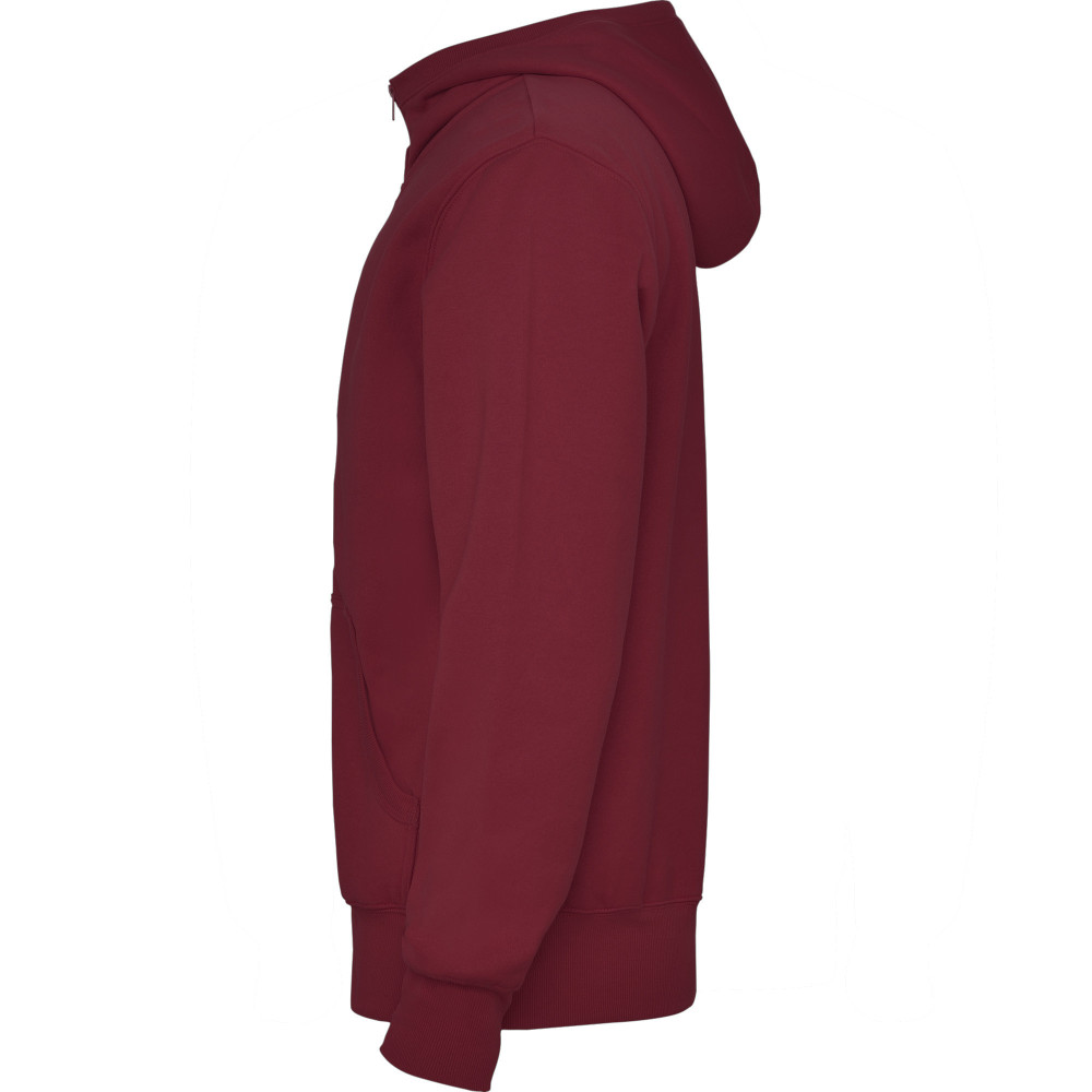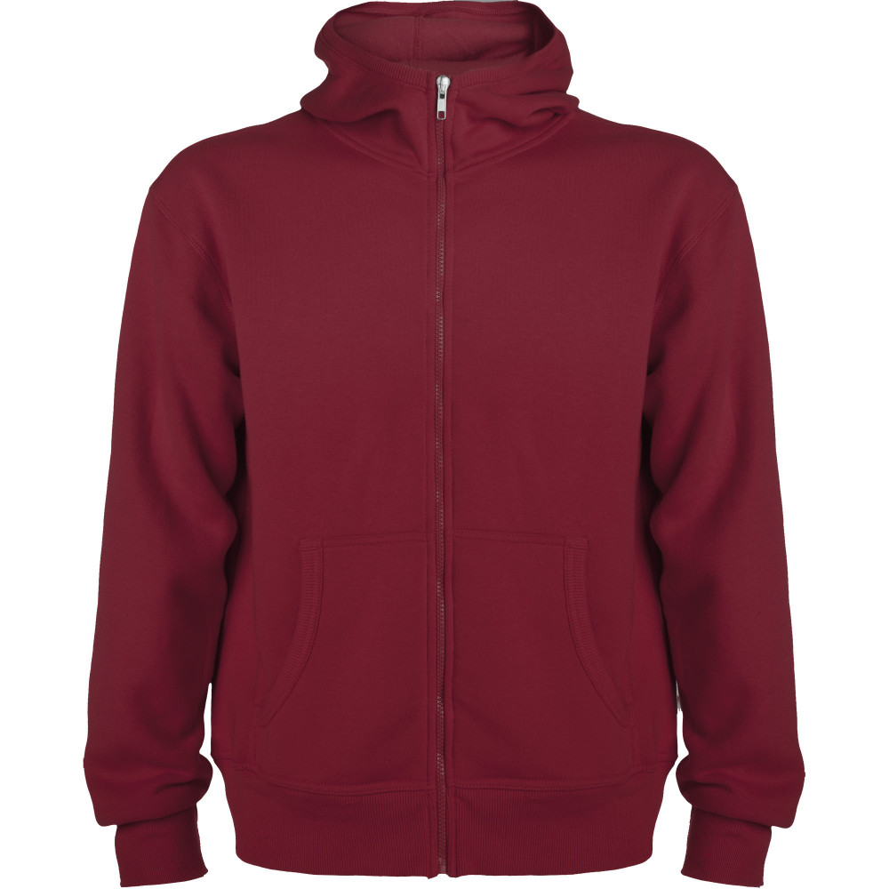 Mikina s kapucí a klokaní kapsou, celopropínací na zip. Lemování kapuce, kapes, rukávů a spodní okraj v žebrovaném úpletu 2x2.
