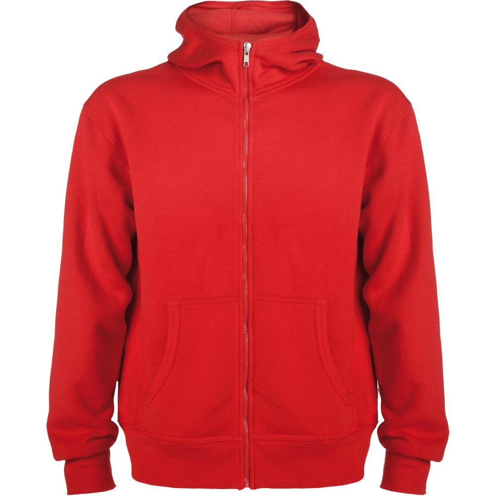 Mikina s kapucí a klokaní kapsou, celopropínací na zip. Lemování kapuce, kapes, rukávů a spodní okraj v žebrovaném úpletu 2x2.