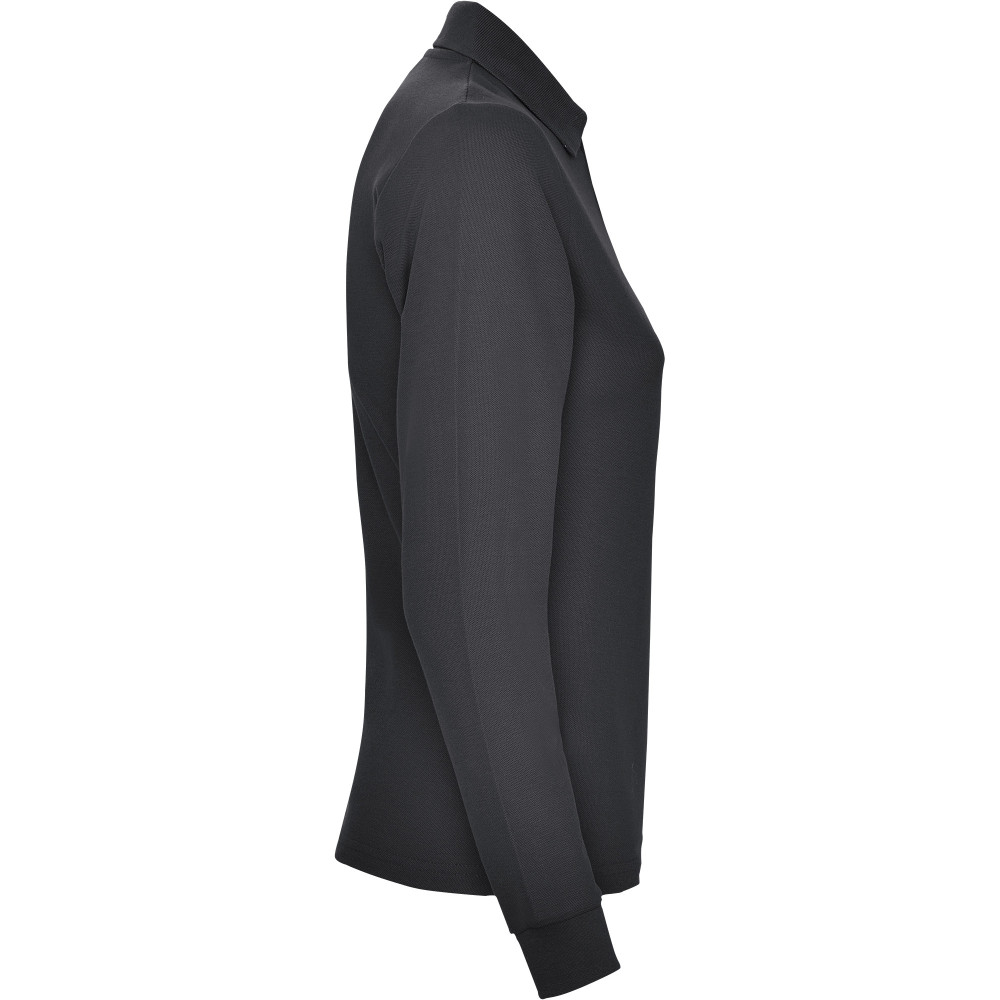 Dámská polokošile s dlouhými rukávy se zapínáním na tři knoflíčky, materiál na kapsu k dispozici. Límec a olemování rukávů v žebrovaném úpletu, zpevněné skryté švy na průkrčníku, boční rozparky.