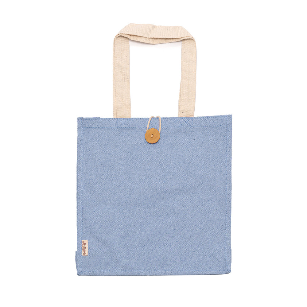 Taška z recyklované bavlny ve vřesovém provedení. Zesílená 70 cm dlouhá ucha. Zapínání na knoflíky.